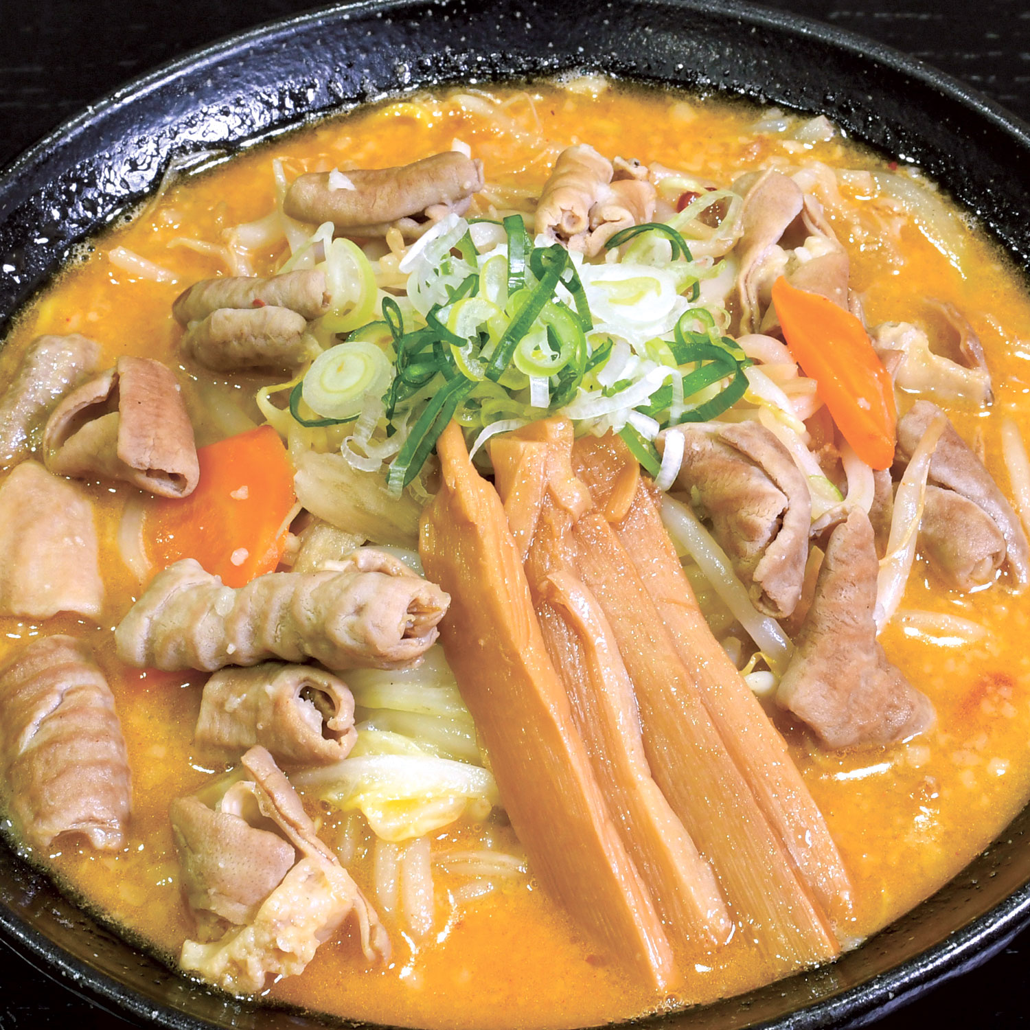 道産ホルモンと野菜を特製味噌でじっくり煮込んだ、まるでモツ煮込みのような一杯です。ホルモンはクセがなく、食感もやわらか~。おろしニンニクで味変も楽しんで。